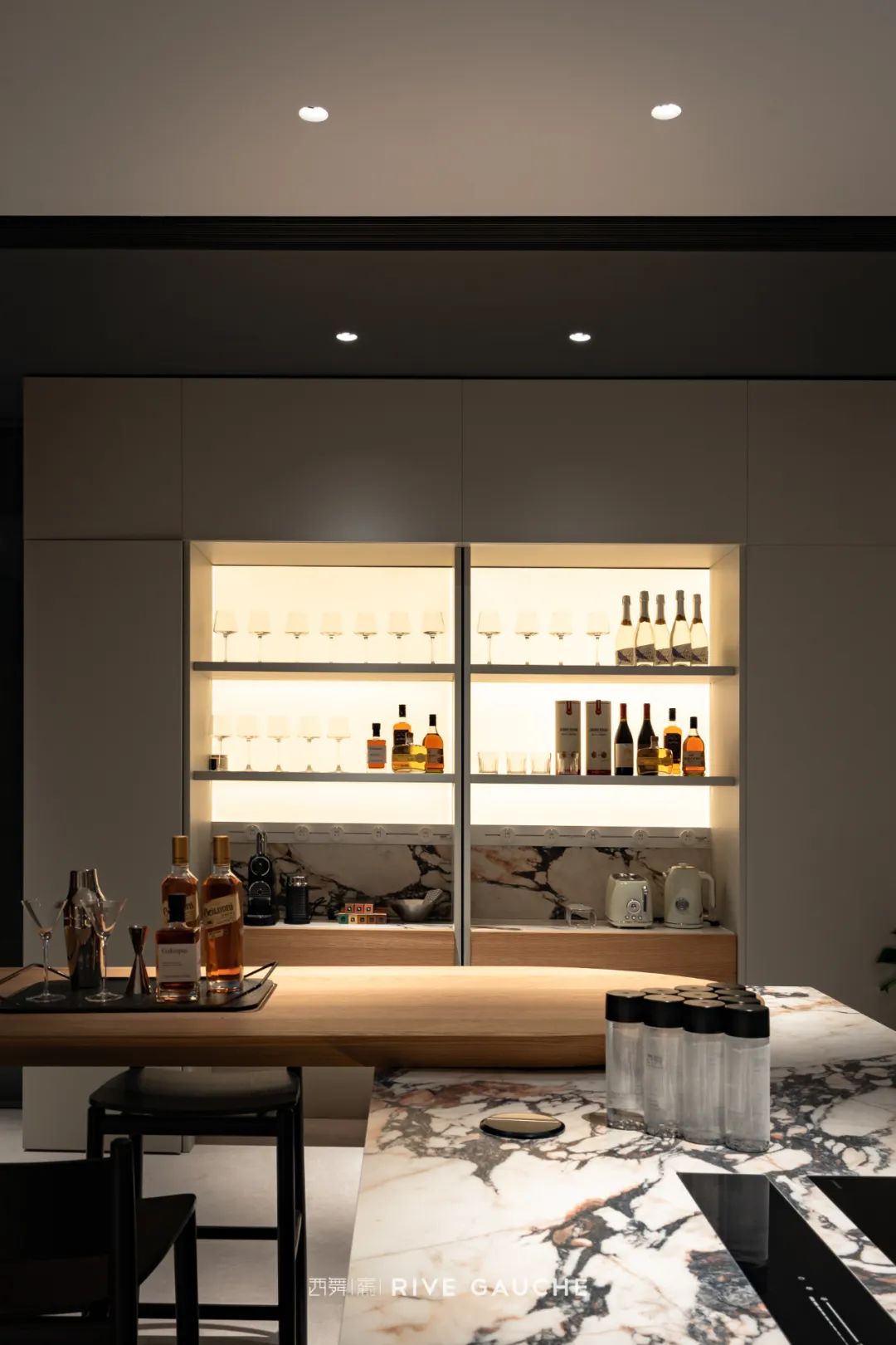 整个空间场景借以柜类产品的构成明修栈道的直抒胸臆,整体布设直来直往,极简与凝练的外在形态,是剔除了符号与标签之后的纯粹呈现